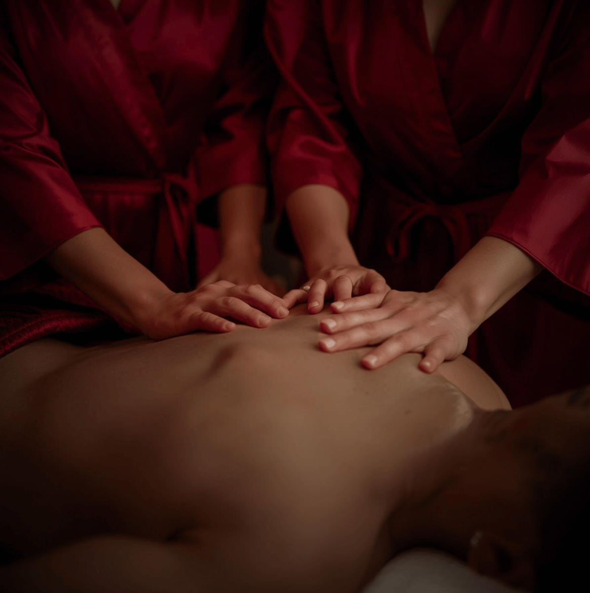 Uma experiência única em que duas terapeutas trabalham em perfeita sintonia, proporcionando relaxamento profundo, equilíbrio e uma sensação de renovação completa. Cada movimento é pensado para maximizar conforto e bem-estar, elevando sua experiência de massagem a outro nível